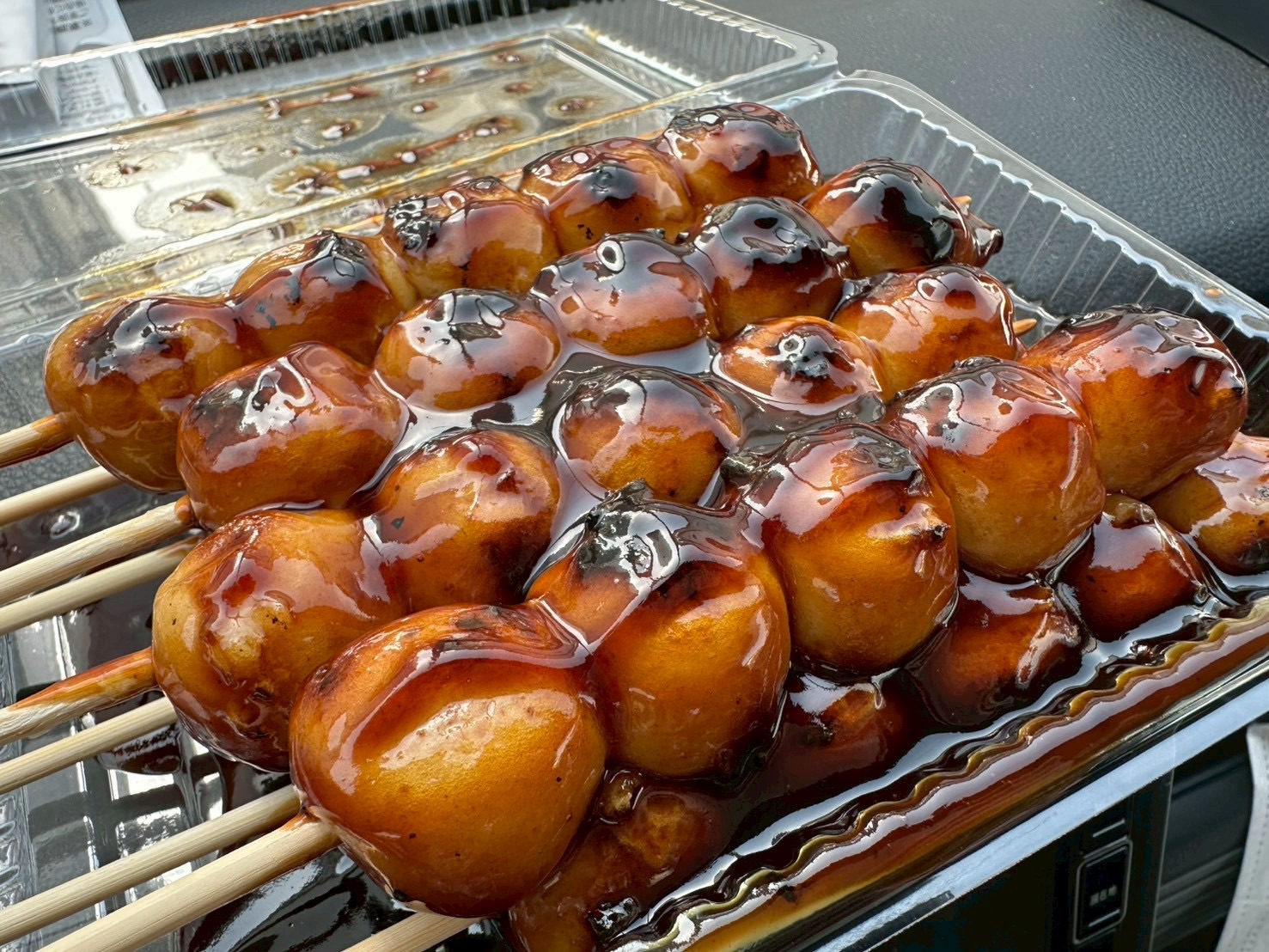しばらく待つこと約5分。香ばしく焼き上がったみたらし団子と、ついにご対面です。